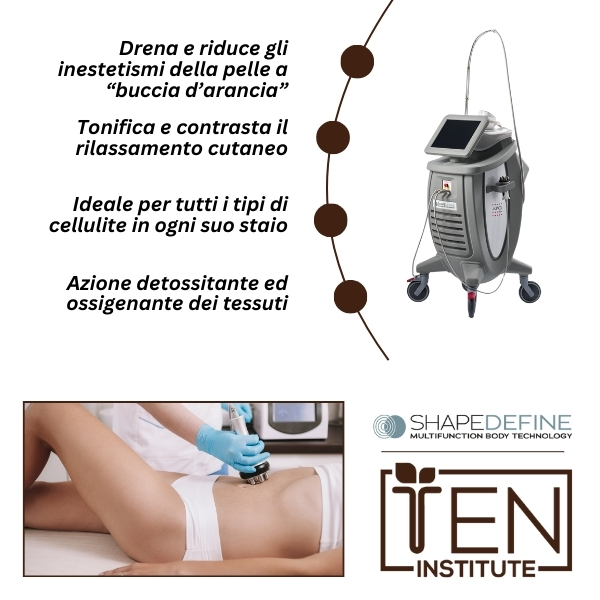 SHAPEDEFINE sfrutta l’azione sinergica di tre manipoli con diverse funzionalità. La combinazione di Radiofrequenza, Endomassaggio e Vacuum permette di agire in profondità sui tessuti per stimolare il drenaggio dei liquidi, ridurre gli inestetismi della cellulite in ogni stadio e migliorare l'elasticità della pelle. Ogni trattamento è personalizzato per rispondere alle specifiche esigenze di ogni cliente, garantendo risultati ottimali grazie all’utilizzo mirato di queste tecnologie.